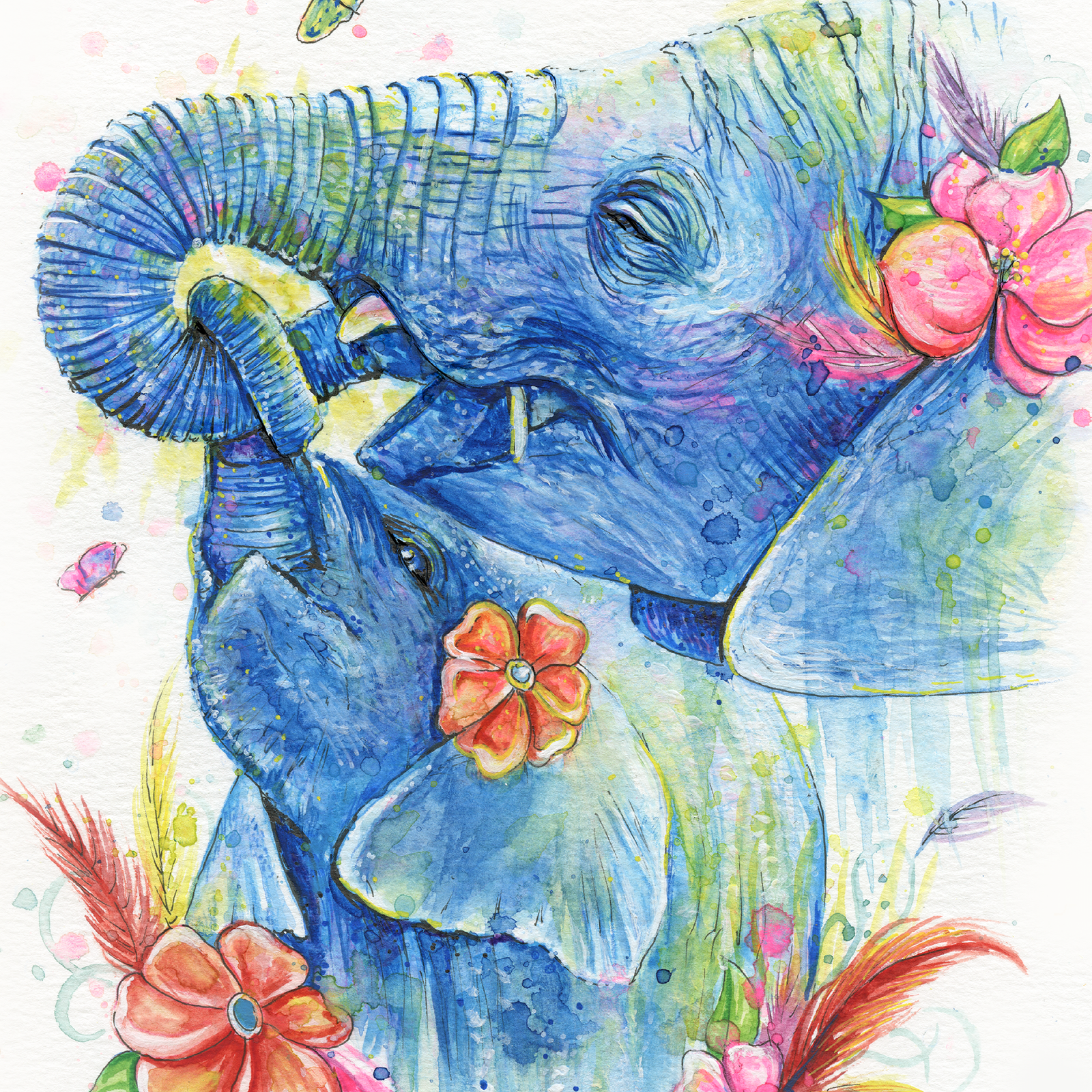 La carte de souhait « Maman vient avec moi » est une reproduction d’une aquarelle émouvante représentant deux éléphants entourés de fleurs. L’illustration met en valeur le lien tendre et protecteur entre une mère et son enfant, symbole parfait pour exprimer l’amour maternel. Cette carte de souhait pour la fête des mères est idéale pour célébrer ce moment unique avec douceur et authenticité.