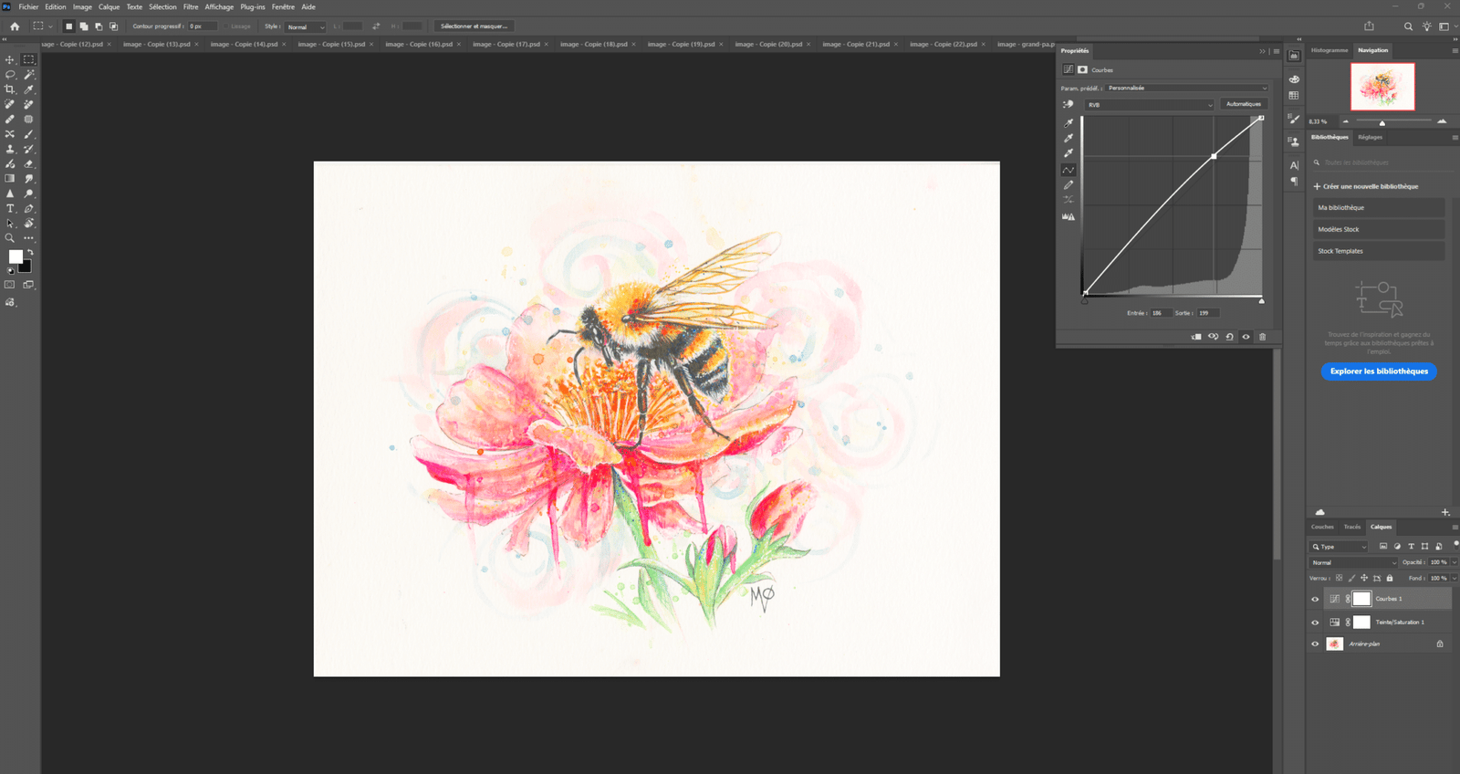 Retoucher une aquarelle sur Photoshop est une étape essentielle pour obtenir un rendu fidèle et professionnel. Avec des ajustements simples — niveaux, couleurs et courbes — il est possible d’améliorer considérablement une numérisation sans dénaturer l’œuvre.